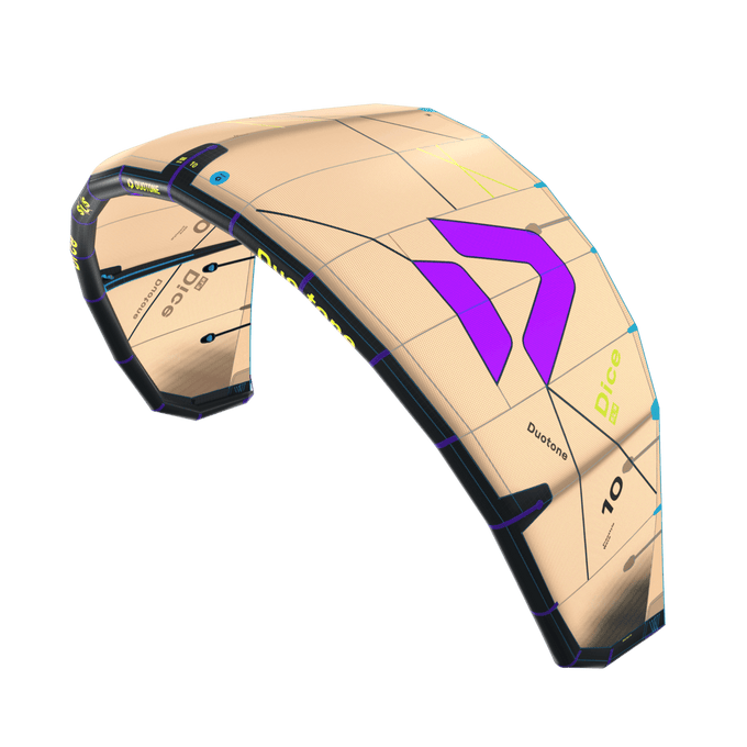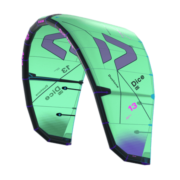 This kite is designed for those who demand explosive pop and crisp slack in their freestyle maneuvers. Spicy it up and experience effortless drift while navigating waves, allowing you to maintain speed and control as you harness the energy of the ocean. With smooth and balanced power, the Dice SLS delivers the kind of performance that inspires confidence in any session. The Dice SLS features speedy turning capabilities, making it a solid performer in all conditions. One of the key advancements is the longer depower stroke, which enables smoother power delivery. The refined arc shape, with a more open center and aggressively pulled-in tips, enhances the depower range while maintaining progressive power development for smooth transitions. Lighter steering is achieved through improvements to the canopy tension and attachment at the tip. This enhances the transfer of steering input, resulting in reduced bar pressure without compromising feedback, giving riders a more engaging experience on the water. Faster and more controlled turning is another highlight of the Dice SLS. With adjusted batten positions and an improved canopy structure, tip flutter is minimized, allowing for tighter, quicker, and more precise turns— essential for both loops and tight maneuvers. When it comes to wave riding, the Dice SLS offers playful and reactive handling. Enhanced steering responsiveness and balanced power delivery make it lively and easier to maneuver in dynamic wave conditions, allowing riders to carve through the surf with ease. Moreover, the optimized bridle setup and improved load distribution provide increased control in gusty or challenging conditions, ensuring stability when faced with unpredictable winds. To top it off, the Dice SLS has been fine-tuned for freestyle performance. A deeper position in the wind window, combined with a refined shape, delivers explosive pop and clean slack, making it easier to execute hooked or unhooked technical tricks with confidence.