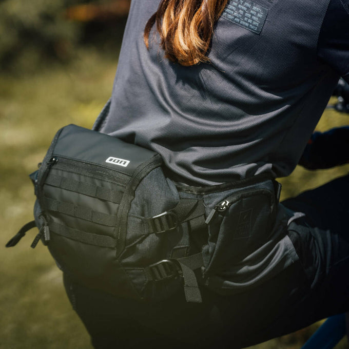 Ventilated hip belt that can be perfectly adapted to a wide range of each rider's individual anatomy, prevents riding up of the hip bag, distributes weight evenly and is also easy to open/close from the side.